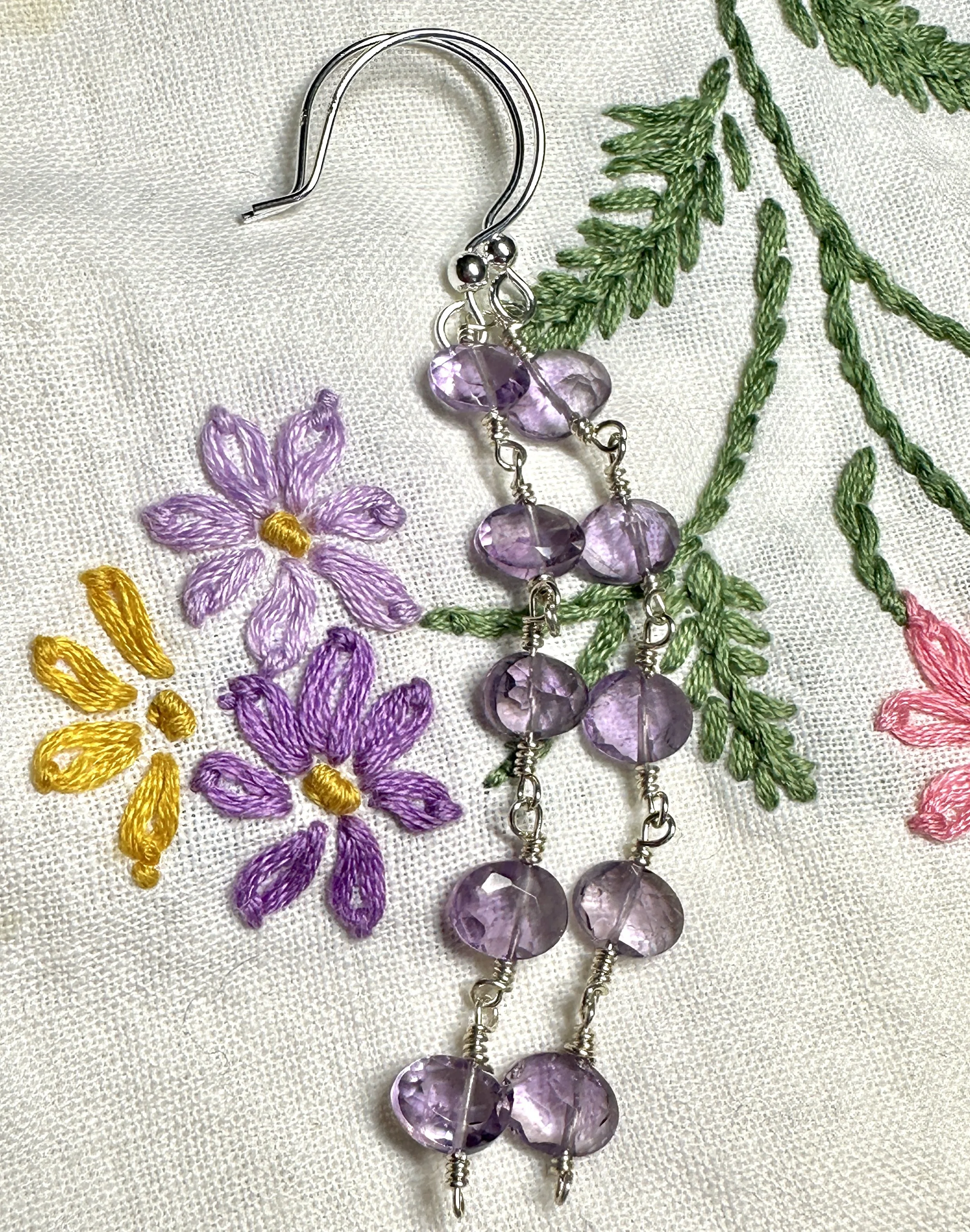 Hand wrapped in Sterling Silver wire, these handcrafted earrings feature hand selected (by me!) faceted oval amethyst drops, and finished with a genuine sterling silver french hooks. These earrings are elegant yet modern and perfect for complementing any outfit. Each gemstone is unique, making these earrings special and one of a kind.